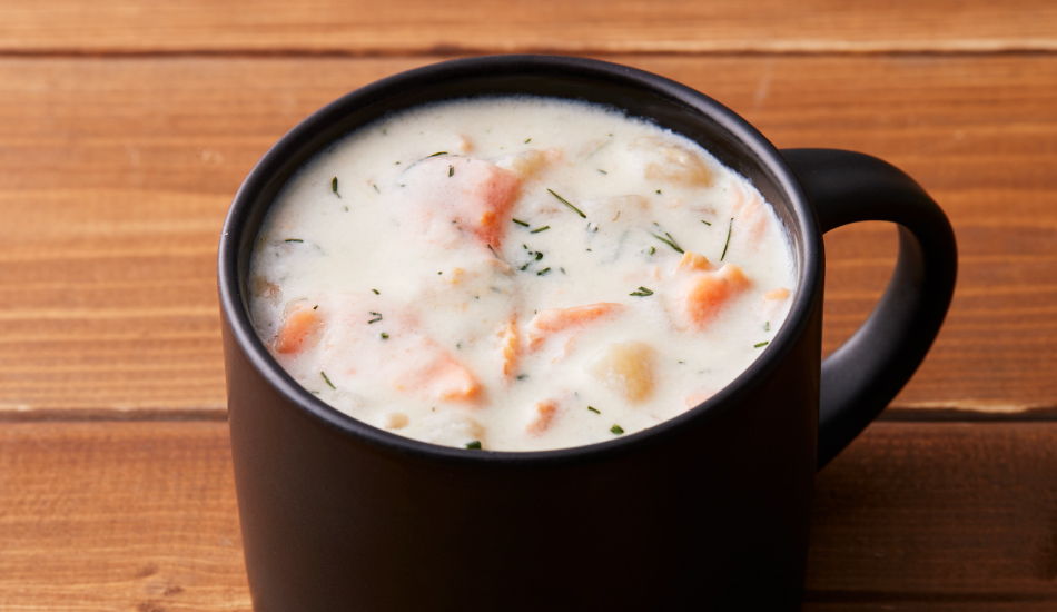 体も心も温まる、冬にうれしいチャウダーです。チャウダーに負けないスモークサーモンの深い味わいをお楽しみください。